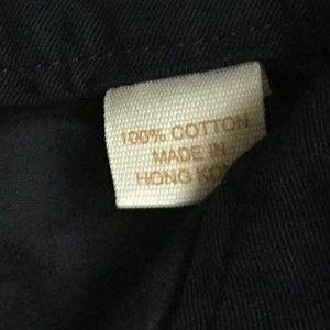 Front slant pockets, back welt pockets, belt loops, zip fly w/ double tab closure
