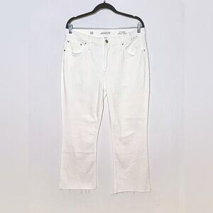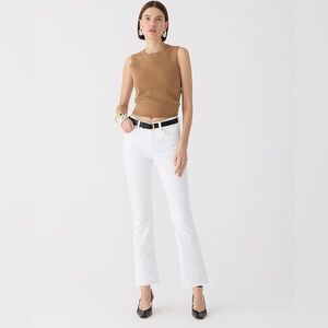 NWT J. Crew 9" Demi-Boot Crop Jean with Raw Hem in White Wash with Perfecting Pockets, Mid Rise, Size 32. 5-pocket styling with zip fly. Slim through the hip and thigh, with a slim, flared leg.