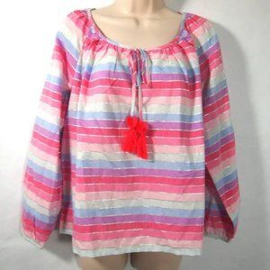 NWT J Crew AM634 Top S Colorful Metallic Candy Stripe Peasant Tassels Long Sleev