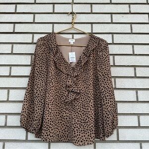 NWT J Crew Animal Printed V-Neck Ruffle Top
