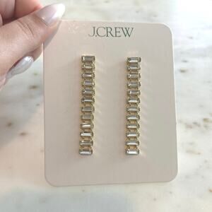 These sparkly chain earrings featuring a row of baguette gems. Want to keep your jewelry looking like new? We recommend removing it before showering or exercise and putting it on after applying hair products or perfume. To clean your pieces, polish them with a soft, dry cloth - and when not wearing, store them in a pouch or jewelry case.