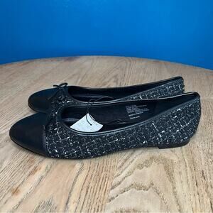 NWT J. Crew Black Cap Toe Tweed Flats Women’s Size 10 Classic Round Toe Slip On