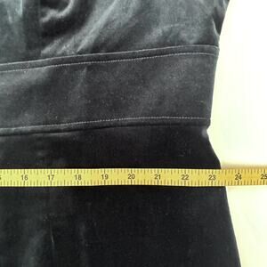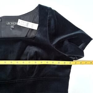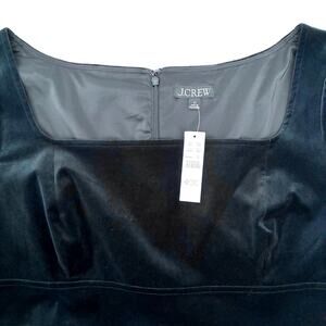 This dress is so pretty. It's a short sleeve, empire (high waist), midi-length, cotton-blend, lined, black velvet dress from J. Crew. New with tags. It would be a great choice for a cocktail or holiday party. The color is a soft black -- it almost seems blue-black in some lighting, which I think is quiet lovely.