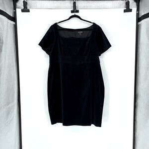 NWT J Crew Black Cotton Velvet Short Sleeve Midi Dress - Plus Size 22 - Cocktail