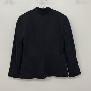 Tags: j.Crew black blazer, open front blazer, collarless blazer, mock neck blazer, mock neck black blazer, casual black blazer, tailored black blazer, business casual, business professional, tailored black jacket, modern blazer