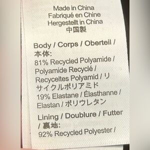 > FABRIC: Shell: 81% recycled nylon/19% elastane; Lining: 92% recycled poly/8% elastane.