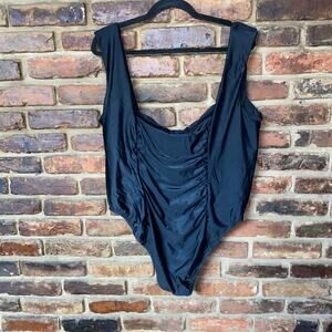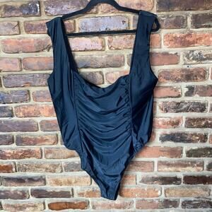 NWT J. Crew Black Ruched Square Neck One-Piece Swim Bathing Suit Women's Size 24