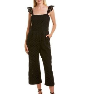 NWT J. Crew Black Ruffle Eyelet Jumpsuit Size 4