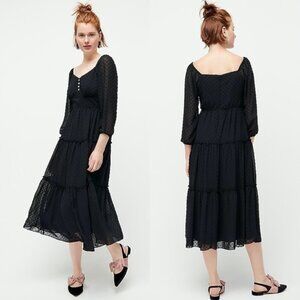 NWT J. Crew Black Tiered Swiss Dot Long Sleeve Dress