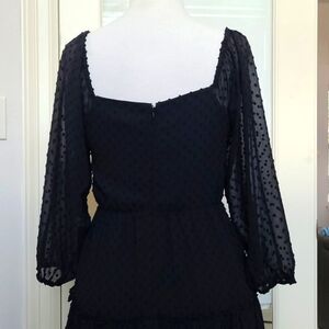 NWT J. Crew Size 6 Black Tiered Swiss Dot Long Sleeve Midi Peasant Bohemian Dress. Bust is about 18 inches across. Elastic shoulder. Sweetheart neckline. First photo is stock photo.
