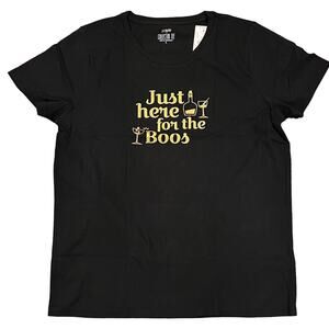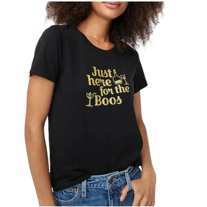 NEW WITH TAGS - RETAIL $40 - This J. Crew Factory Black W/"Just Here for the Boos" Halloween Graphic Tee with gold glitter writing. is precious and perfect for Halloween! 100% cotton. Better Cotton. Slightly loose fit. Hits at hip. Machine wash. COLOR is Black & Gold