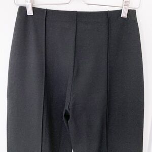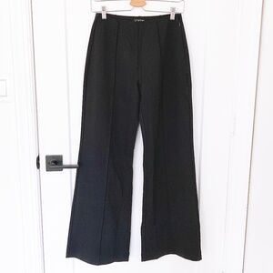These J Crew pants are NWT. Black knit ponte wide-leg pants. Pintuck detail down front and back of legs. In a medium-to-lighter weight knit. Side zip. Waist measurement: 13". Rise: 10.5". Inseam: 31". Leg opening: 24". 67% viscose, 29% polyamide, 4% elastane. Size small.