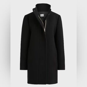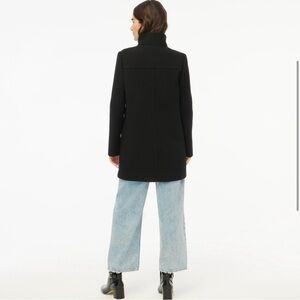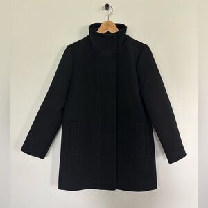 NWT J. Crew Black Wool Peacoat City Coat with Button Neck mock neck