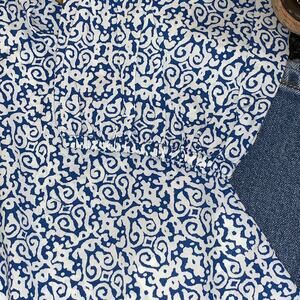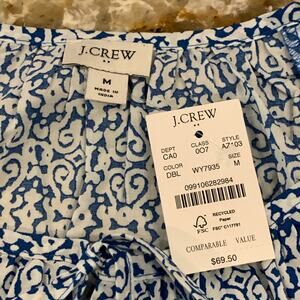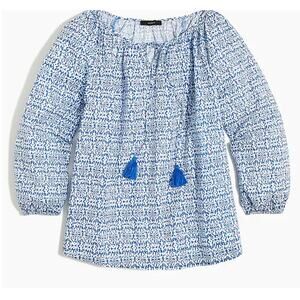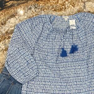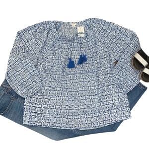 NWT J. Crew Blue and White Raglan Cotton Tassel Tie Boho Top - SIZE MEDIUM