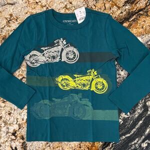 NEW WITH TAGS - This J Crew Factory Crewcuts Boys' Long Sleeve Motorcycle Graphic Tee is precious and perfect for fall. FROM J CREW'S TOP SECRET GRAPHICS LAB TO THEIR CLOSETS, A SUPERSOFT TEE FOR LITTLE MOTORCYCLE LOVERS. cotton, machine washable, COLOR Aqua Green with precious motorcycle colored graphic.