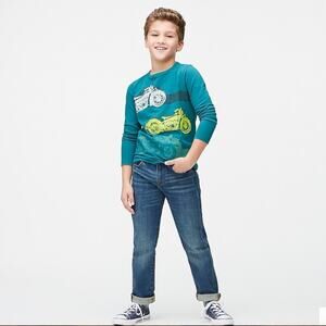 NWT J. Crew Boys' Aqua Green W/Motorcycle Graphic Long Sleeve Tee