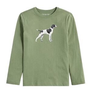 NEW WITH TAGS - RETAIL $35 - This J. Crew Boys' Green W/Pointer Dog Graphic Tee is perfect for any occasion! 100% cotton. Long sleeves. Crewneck Machine wash. COLOR is weathered olive green