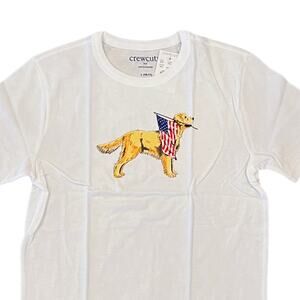NWT J. Crew Boys' White W/Patriotic Flag 4th of July Dog Graphic Tee