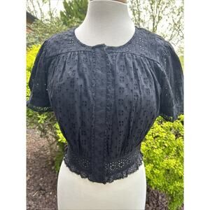 NWT J. Crew Button Front Eyelet Cropped Top Black Sz XS