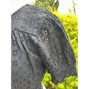 NWT J. Crew Button Front Eyelet Cropped Top Black Sz XS