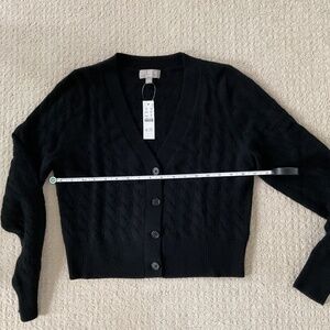 Black, size Medium, cable knit cardigan. 100% Cashmere. Please see pictures for measurements. Photo of green sweater to show texture.