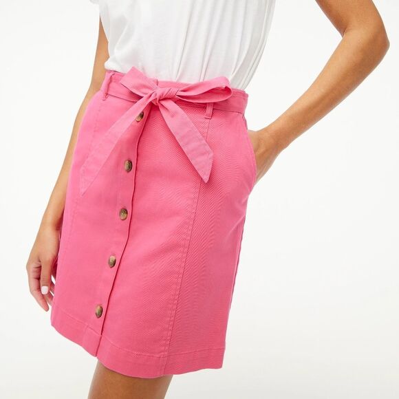 NWT J. Crew Chino Button Front Tie Waist Mini Skirt in Sweet Briar Pink