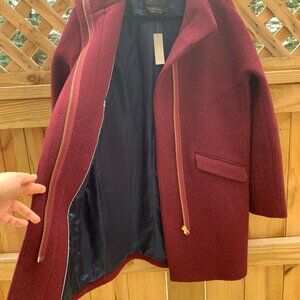 NWT J. Crew Cocoon Coat in Italian Stadium-Cloth Wool Blend | Size 8 | Burgundy