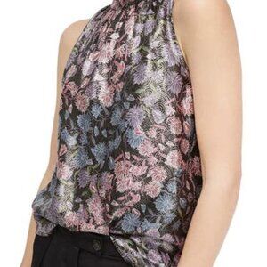 NWT J. Crew Collection Floral Metallic Tie Neck Jacquard Sleeveless Top Sz M