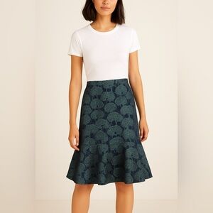 RARE!!! New with tags. J. Crew Collection Jacquard Metallic Floral Print Trumpet Skirt in dark Green and Blue. Size 8. Lined. Partial zip closure at back. Somewhat structured material. So flattering. I’ve added a photo of a different print skirt to show the fit. Perfect for the Holidays.