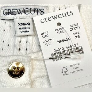 NWT J. Crew Crewcuts Girls' Pointelle-Knit Cardigan in Ivory, Size XS (4-5)