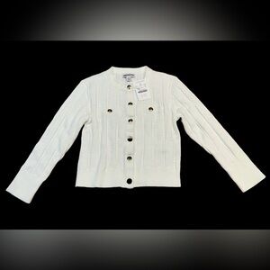NWT J. Crew Crewcuts Girls' Pointelle-Knit Long-Sleeve Cardigan with Gold Buttons in Ivory, Size XS (4-5).