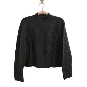NWT J. Crew Cropped Cable-Knit Rollneck Sweater Supersoft Yarn Dark Gray XS