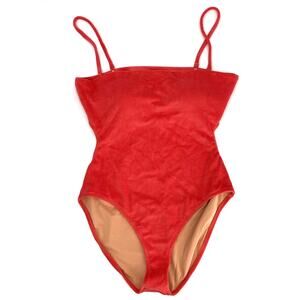 NWT J. Crew Cut Out Bandeau One Piece Swimsuit in Terry Coral Size 18 Red Pink
