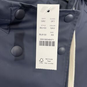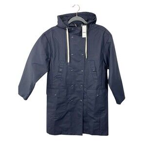 NWT J. Crew Double Breasted Rain Coat Navy Blue Sz XS Hooded Waterproof Jacket