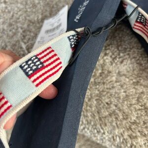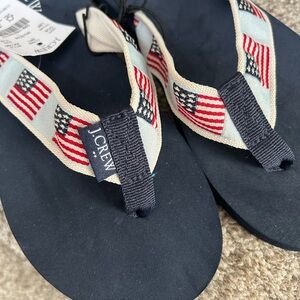 NWT J. Crew Embroidered American Flag Patriotic Flip Flops. Size 7. Summer.