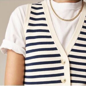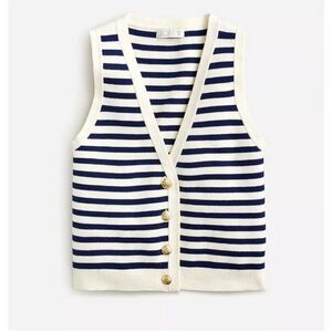 NWT J. Crew Emilie Sweater Vest in Cream Navy Stripe with Gold Buttons