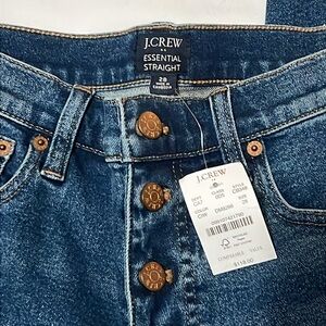NWT J. Crew Essential Straight Exposed Button Dark Wash Jeans
