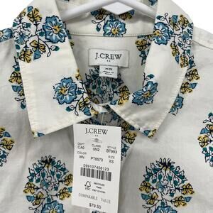 NWT J. Crew Factory Blue Yellow Floral Print White Button Up Shirt Womens XS