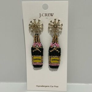NWT J. Crew Factory Champagne Beaded Rhinestone Dangly Statement Earrings