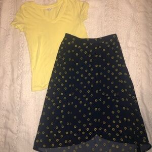 Has an elastic waistband and is decorated with sunflowers!