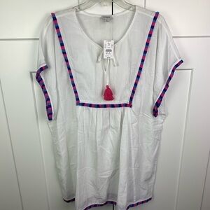 NWT J Crew Factory Fringe tunic cover-up White Pink Blue