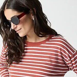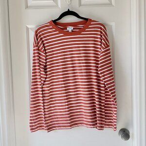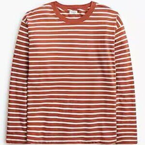 NWT J. Crew Factory Long Sleeve Crewneck Striped Tee, Size Medium, Red/White