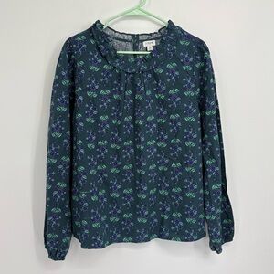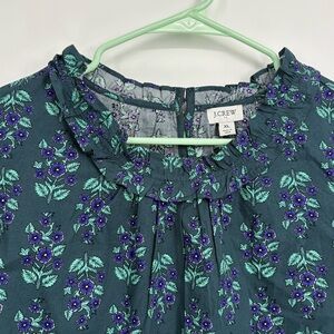 NWT J. Crew Factory Long-sleeve Ruffleneck Poplin Blouse Warm Spruce Antique Nav