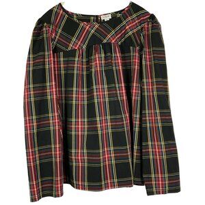 NWT J. Crew Factory Tartan puff-sleeve top in stretch poplin, XL, AG684