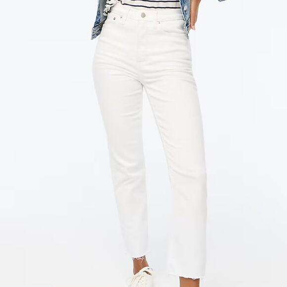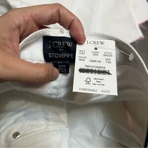 NWT J Crew Factory White Stovepipe Signature Stretch + SZ 32T Raw Hem Jeans