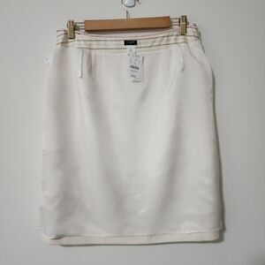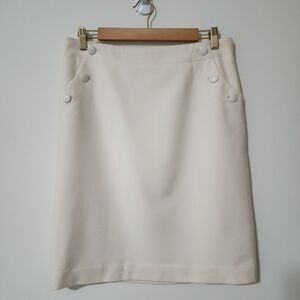 NWT J Crew Factory Womens Soft Wool Straight Skirt Ivory Lined Big Buttons Sz 8