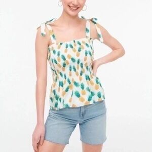 NWT J Crew Factory XL Smocked Tie Shoulder Pineapple Tropical Beach White Blouse