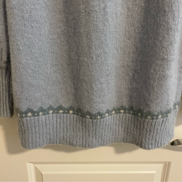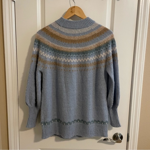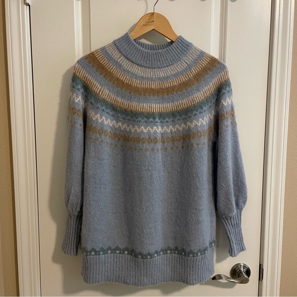 NWT J. Crew Fair Isle Yoke Puff Sleeve Powder Blue Crewneck Sweater Size XXS