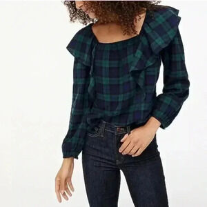 NWT J. Crew Flannel Squareneck Ruffle Top size Medium
