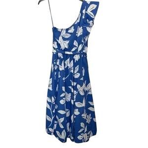 Elevate Your Summer Style with This Stunning Floral Dress. This vibrant blue dress with a bold floral print is perfect for any special occasion. Its one-shoulder design adds a touch of modern elegance, while the cinched waist and flowing skirt create a flattering silhouette. The comfortable cotton fabric ensures you'll stay cool and comfortable all day long.